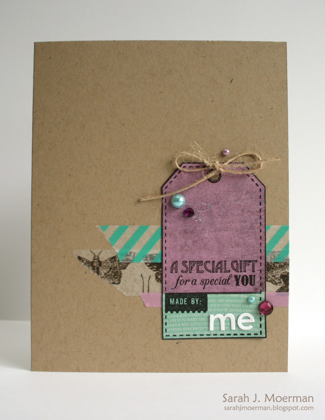 This card came together so easily with the Tim Holtz journaling tickets and the Simon Says Stamp kraft circle stickers. I basically just added some stamping and brads and there you have it. :)