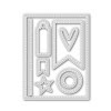 After stamping the image repeatedly with Memento Tuxedo Black Dye Ink, I coloured each row in with a different shade of red Copic Marker. (I was inspired by the Crate Paper Hello Love Stickers that came in this month's kit). I die cut the panel using the rectangle from Simon's Bundle of Stitches Dies and adhered it to a notecard made from Simon's Cotton Candy Cardstock. I then white heat embossed the sentiment on a strip of Simon's Black Cardstock and adhered it to the card.